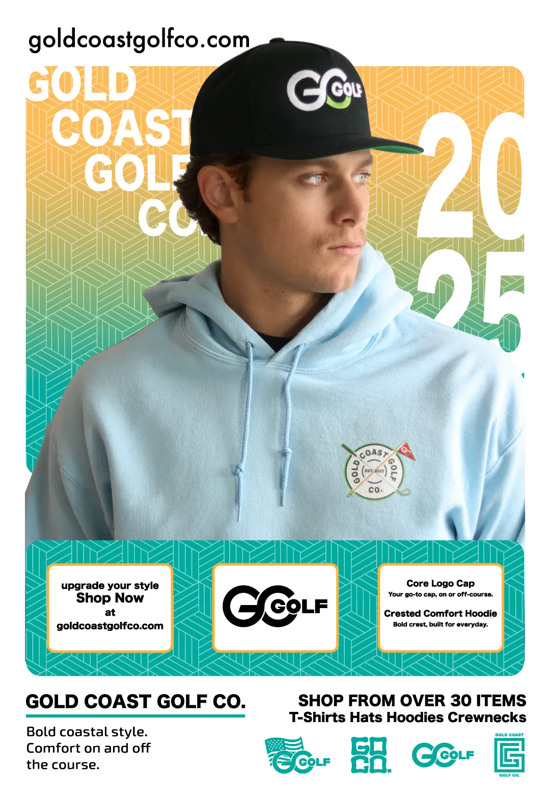 Developed brand positioning around "coastal casual" — relaxed, graphic-forward apparel for golfers who care more about style than scorecards