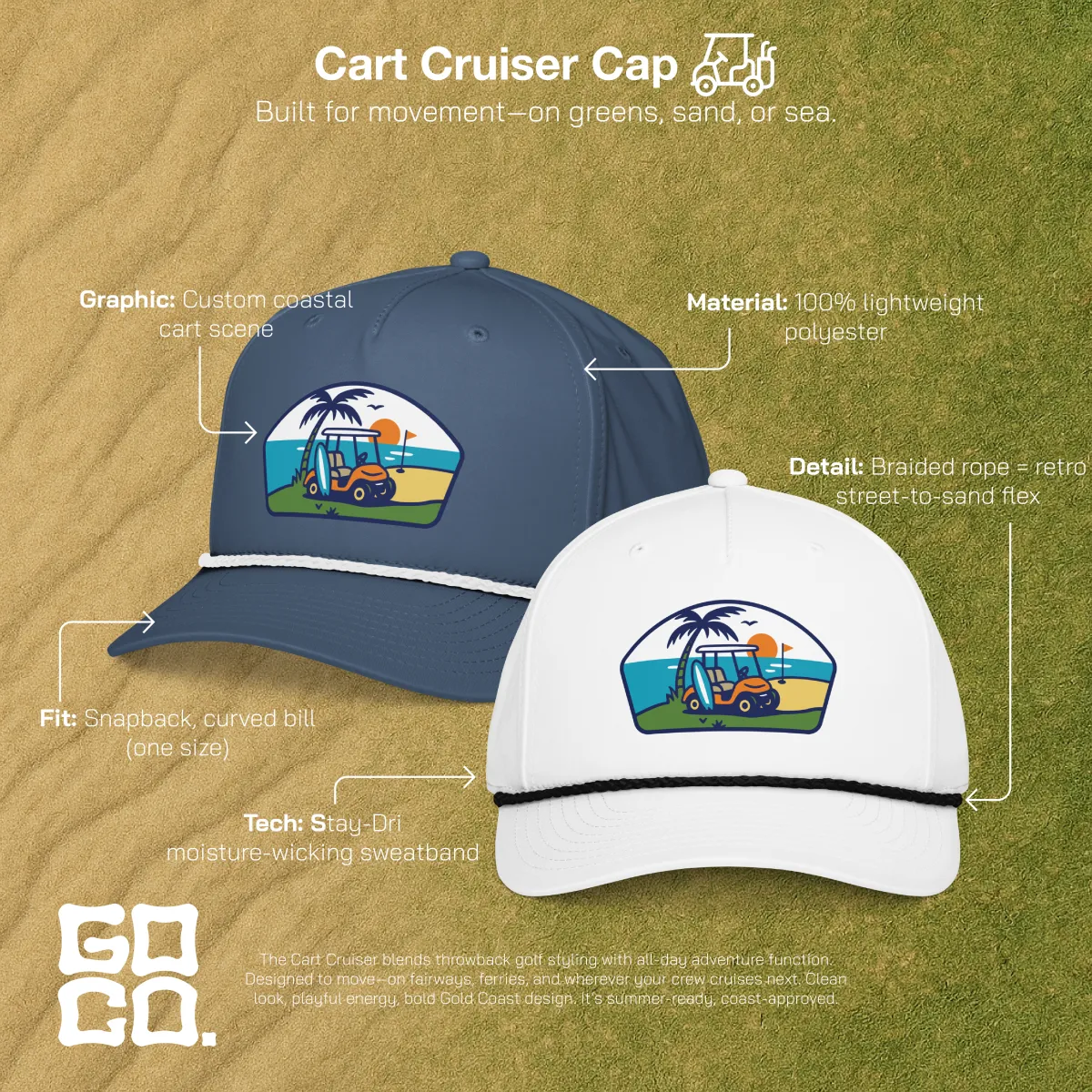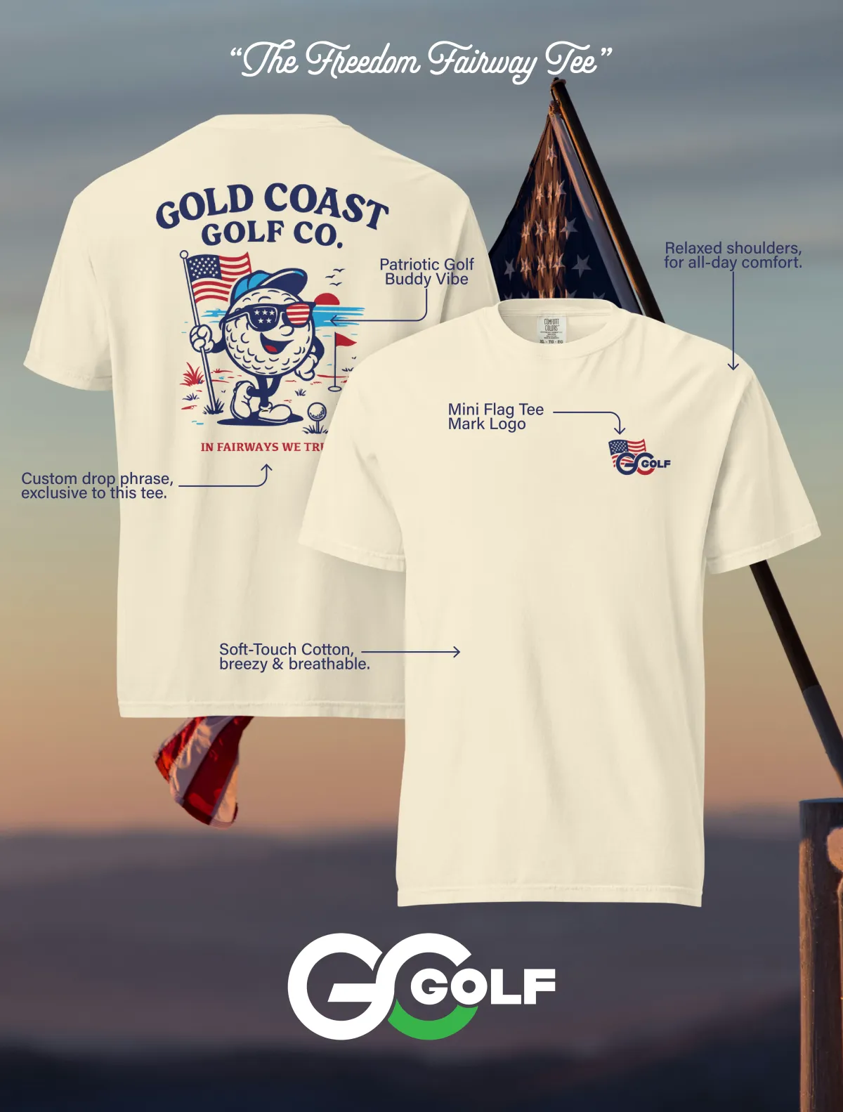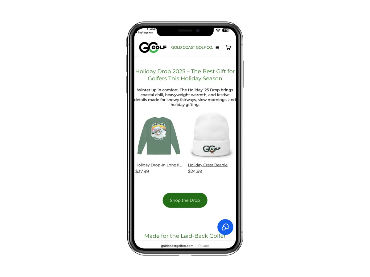 What started as a senior thesis project became a fully operational apparel brand. I built Gold Coast Golf Co. from concept to market — handling brand strategy, logo design, apparel artwork, website development, product photography, and social media content.