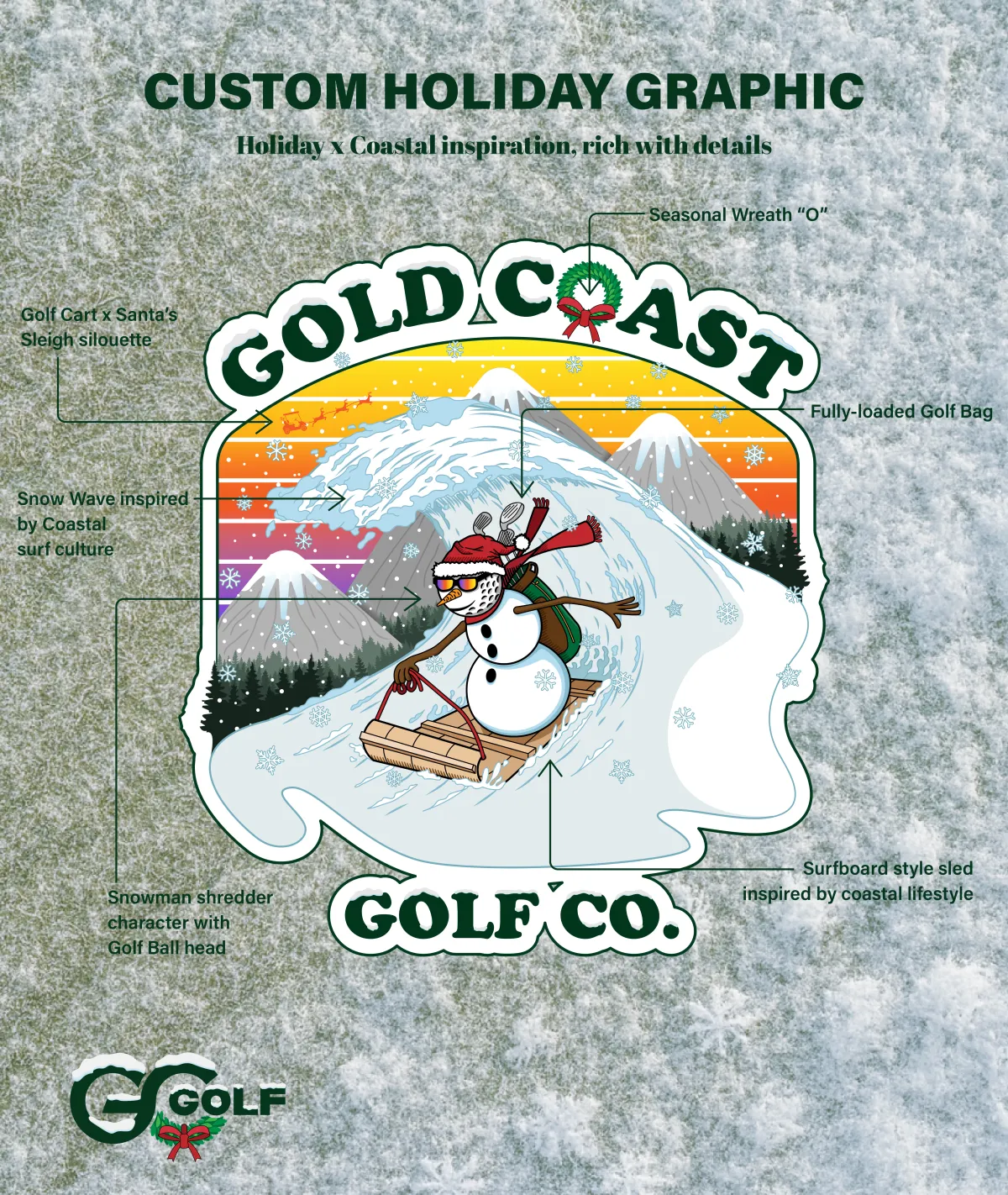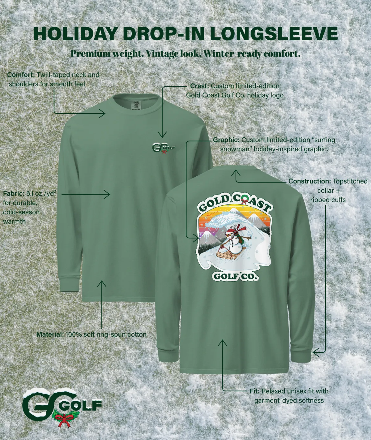 Short-form video highlighting the design details and inspiration behind the Holiday Drop-In longsleeve, positioning it as the perfect gift for golfers.